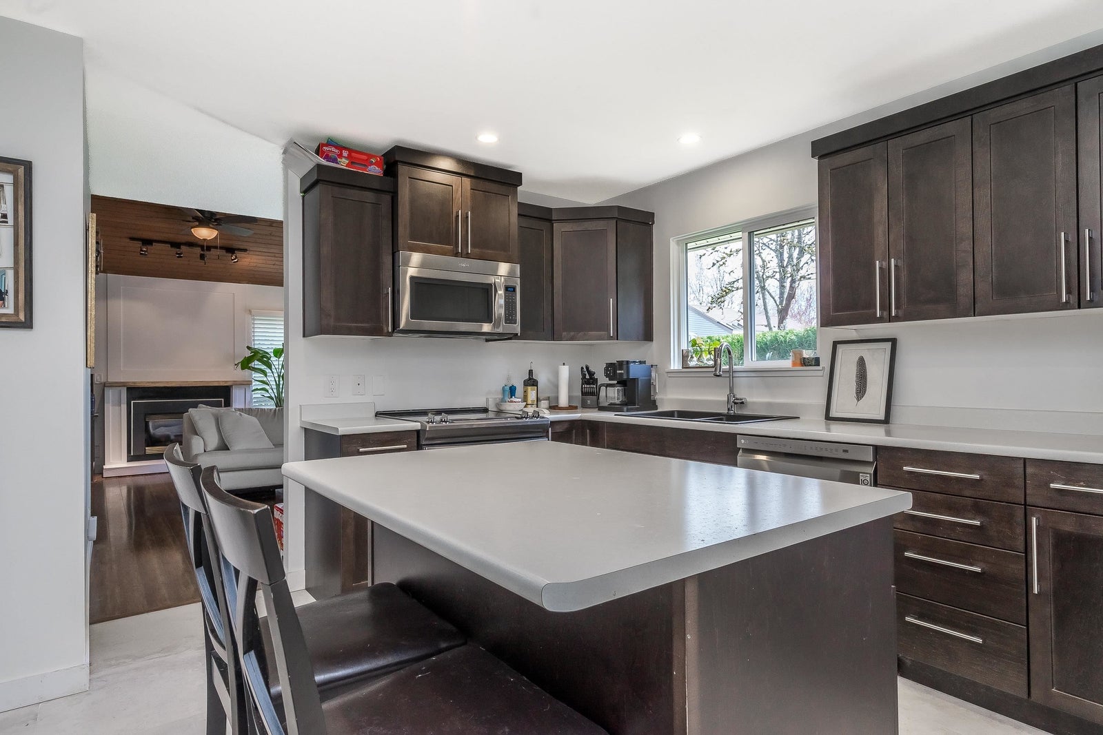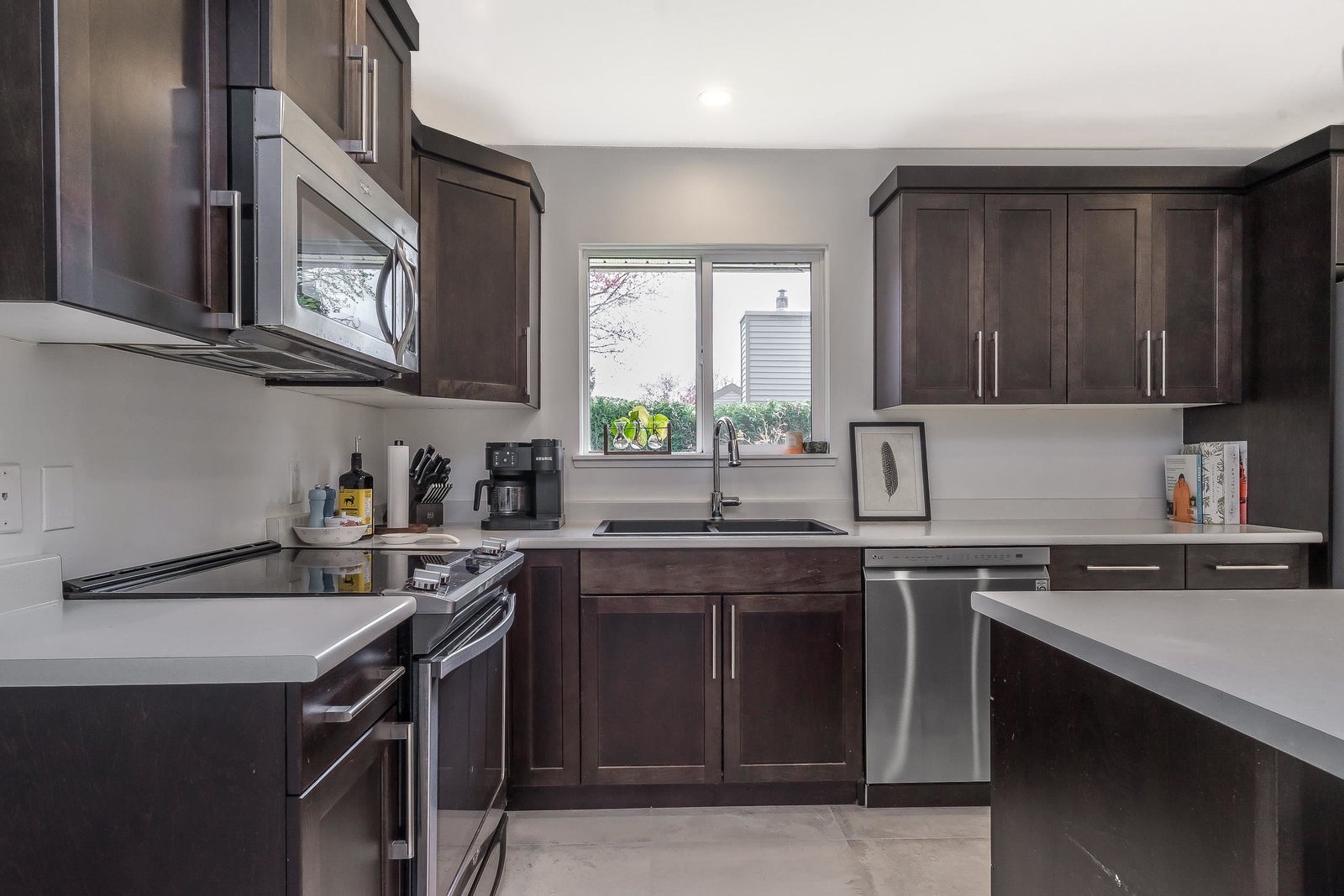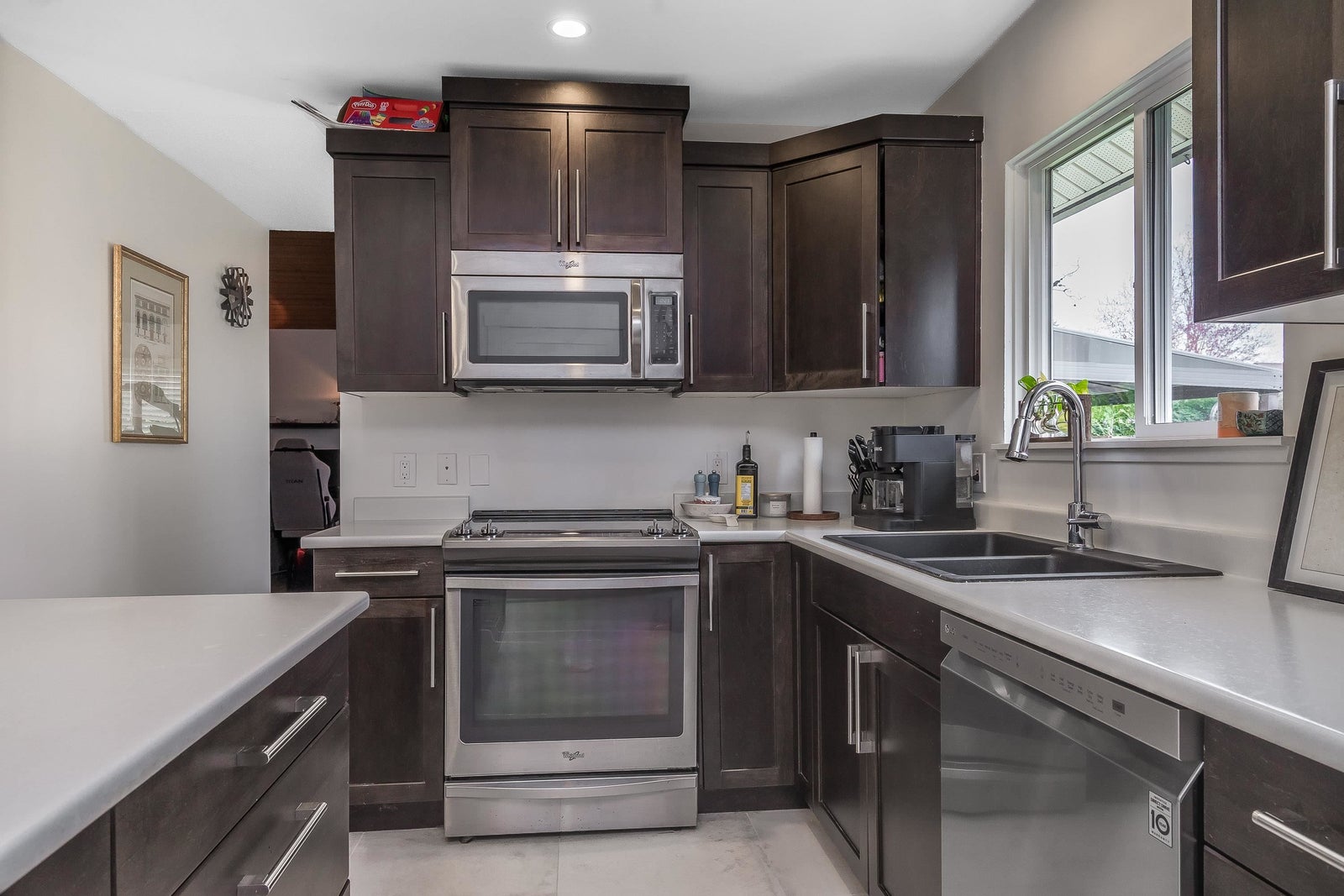 Beautifully updated 2bdrm, 1bath Rancher Style t/house in Greenside Estates! Totally updated kitchen from cabinets to s/s appls & island. 2 good sized bdrms & an updated bath add an extra touch of luxury. A bright & airy atmosphere fills the lvg rm thanks to the vaulted ceilings. Sliders from the lvg rm take you out to the generous sized & private yard - perfect for outdoor relaxation or entertaining. Super convenient location with easy walk to Latimer Road Elementary, Willowbrook Mall, bus stop is just steps away PLUS it will be a short walk to a future Skytrain Station! Don't miss out!