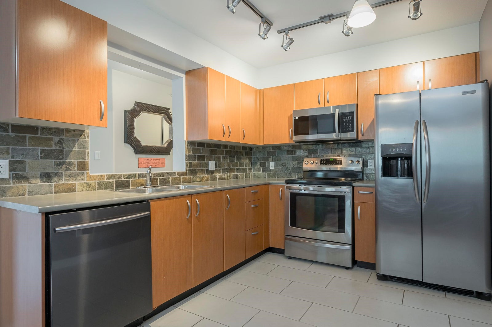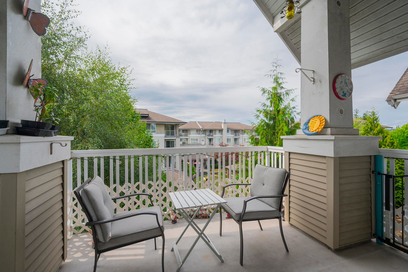 Beautiful & Spacious 2Bd/ 2Bath PLUS a Den Top Floor Corner unit in highly desired Fairfield Lane. Nice bright home with great view of Golden Ears Mountain and court yard from private covered deck and bedrooms. Large kitchen/dining area with S/S appliances, new space saver micro, garburator and dishwasher. Plus all toilets and washer/dryer have been upgraded. Both bedrooms are good sizes, with the primary featuring a walk-in closet and 5 piece ensuite. This truly is a beautiful home in a great location with lots of easy visitor and street parking available, plus walking distance to all amenities.