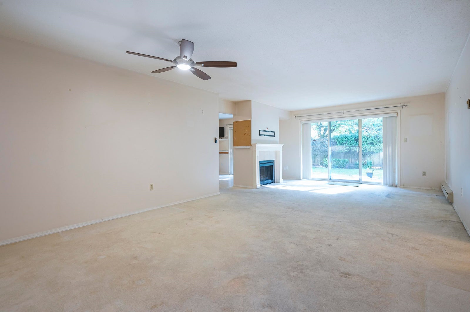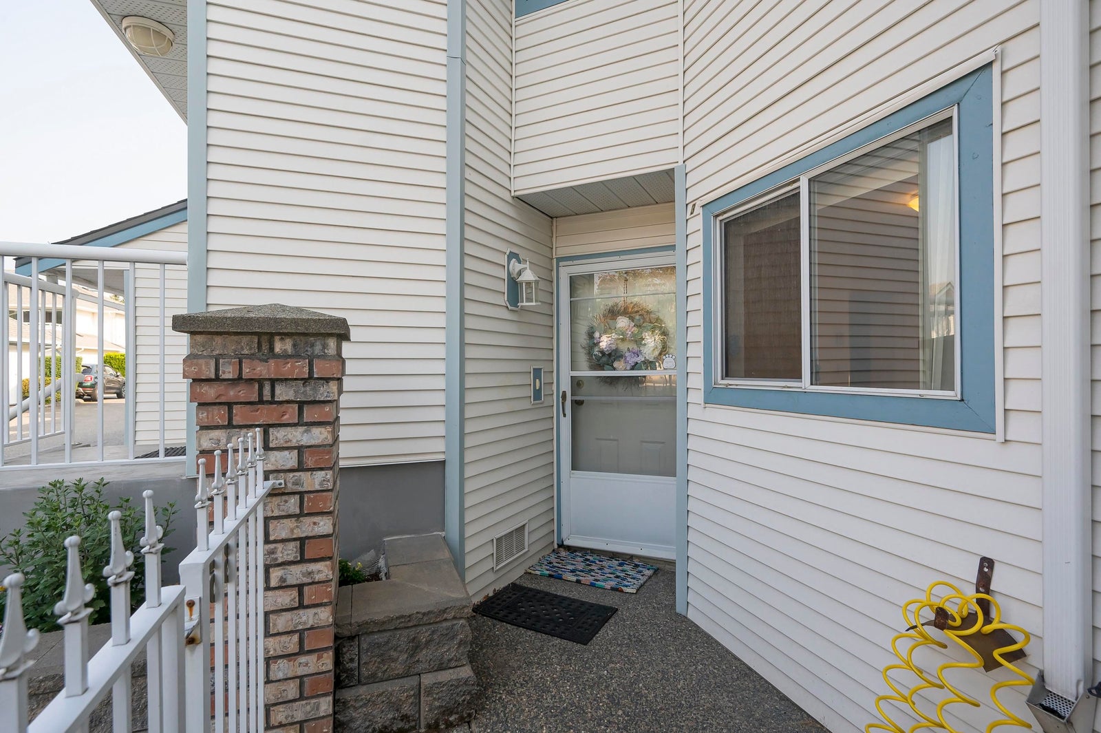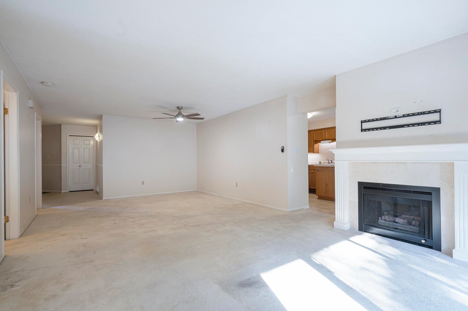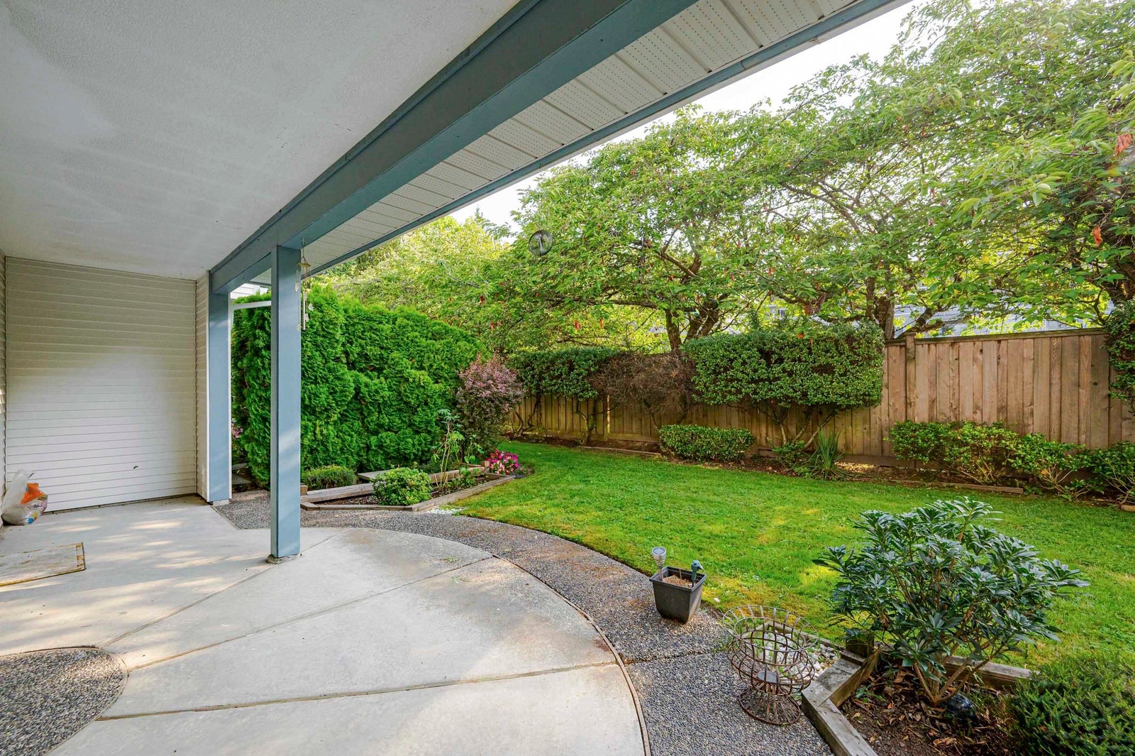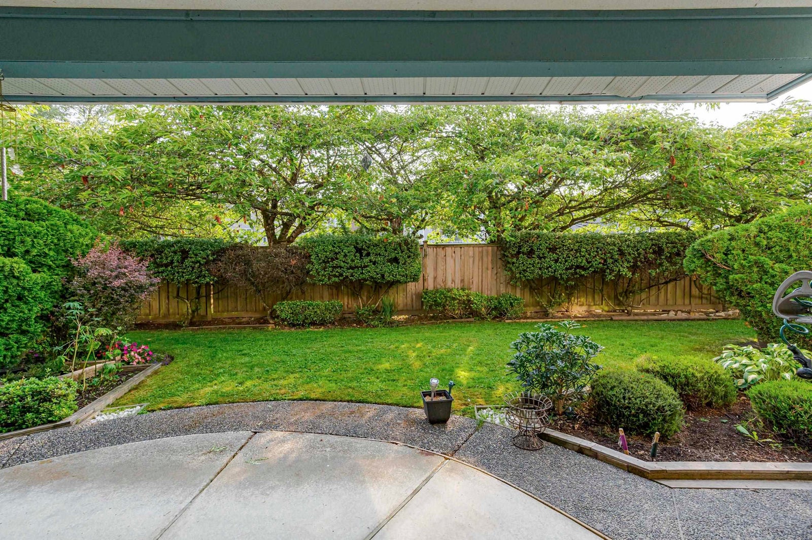 Welcome to Cheriton Park! This 1,273 sq. ft. rancher-style home offers 2 bedrooms, 2 bathrooms, and a spacious open layout. The primary bedroom features dual closets, and the bright living/dining area includes a cozy gas fireplace. Enjoy two sliding doors leading to a beautifully landscaped, covered patio. Additional features include a large laundry room, single garage, and extra parking out front. Centrally located, just steps to Willowbrook Mall, Superstore, restaurants, and transit. A well-maintained, sought-after complex in a prime location!