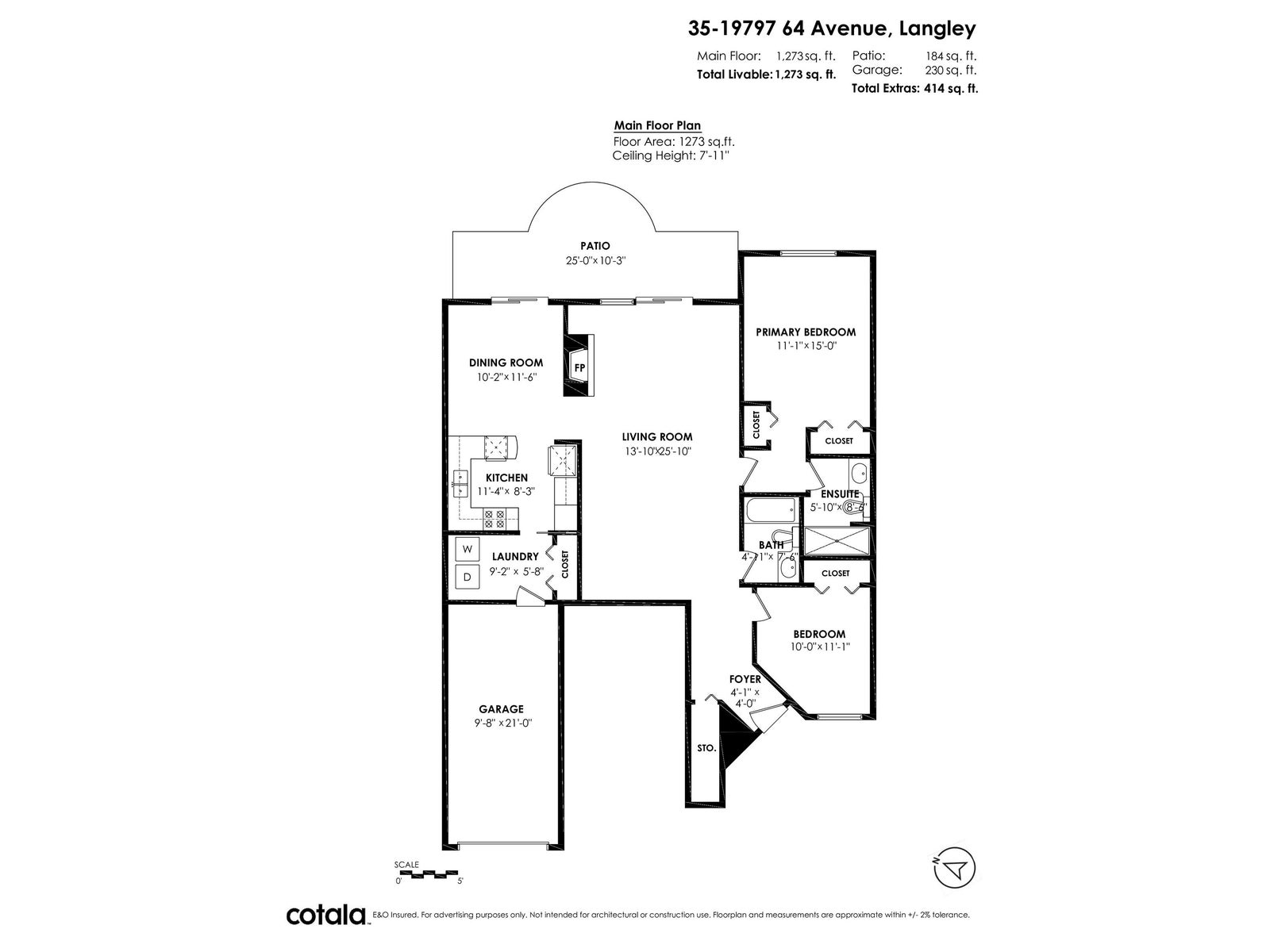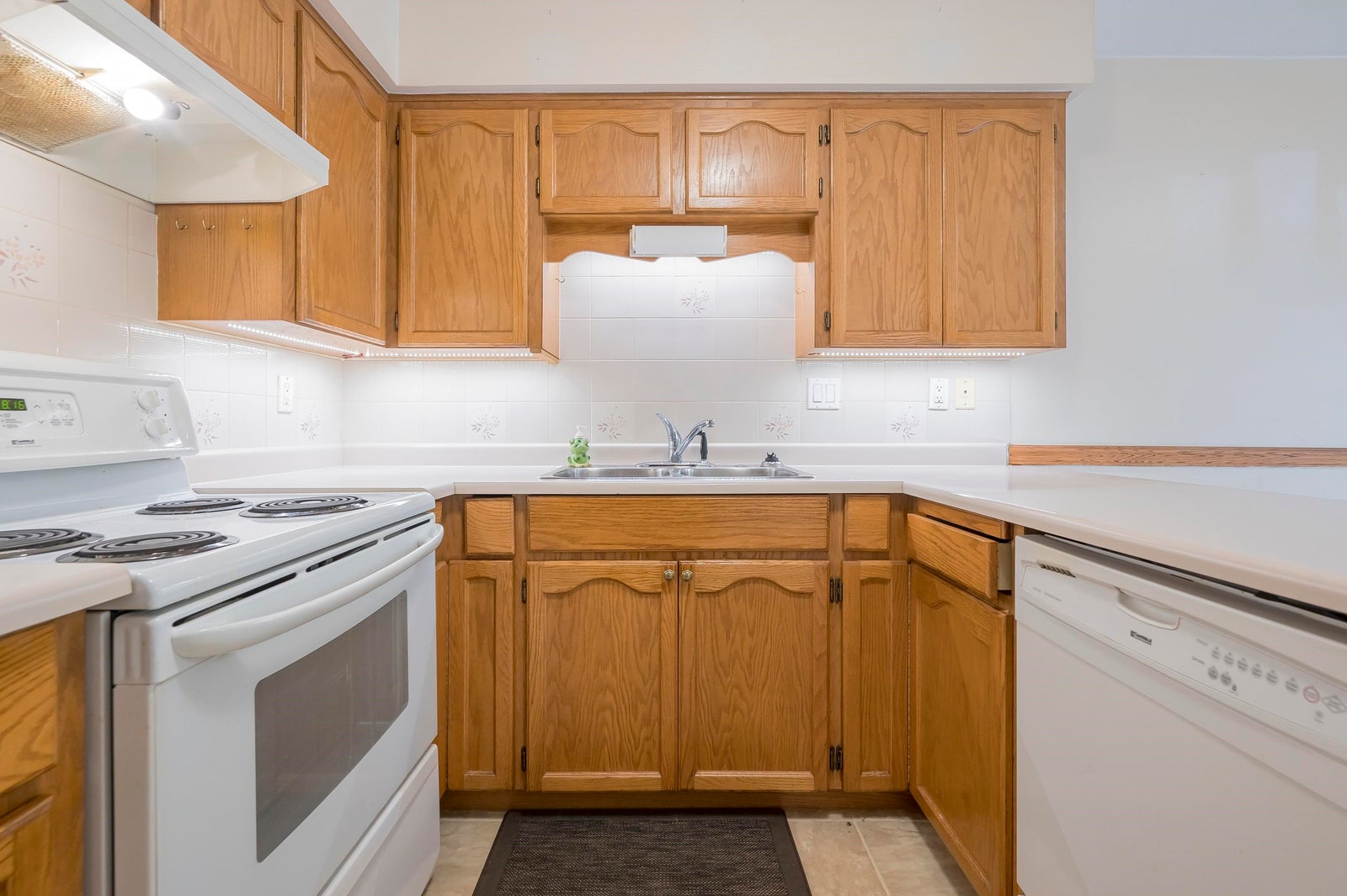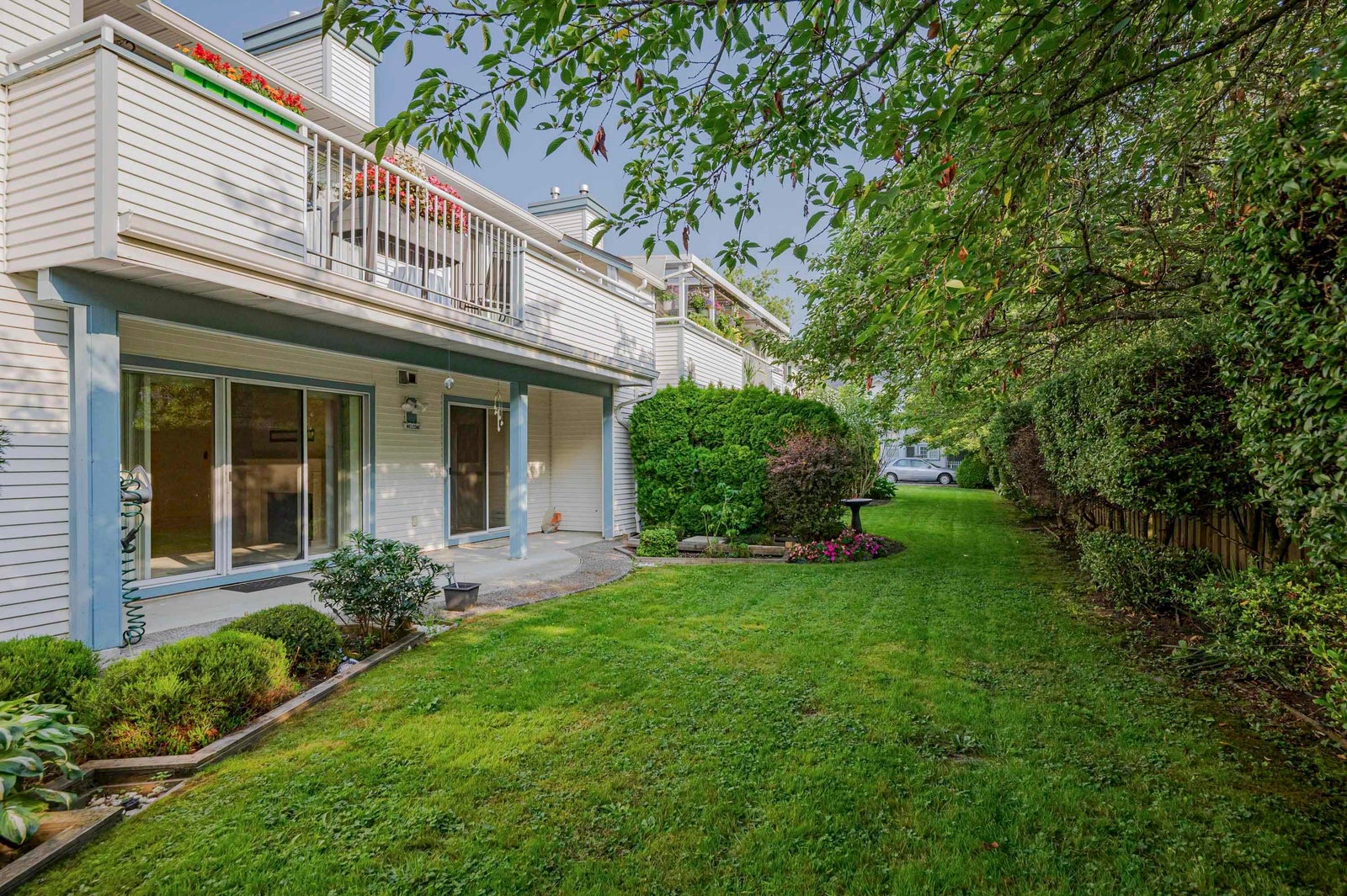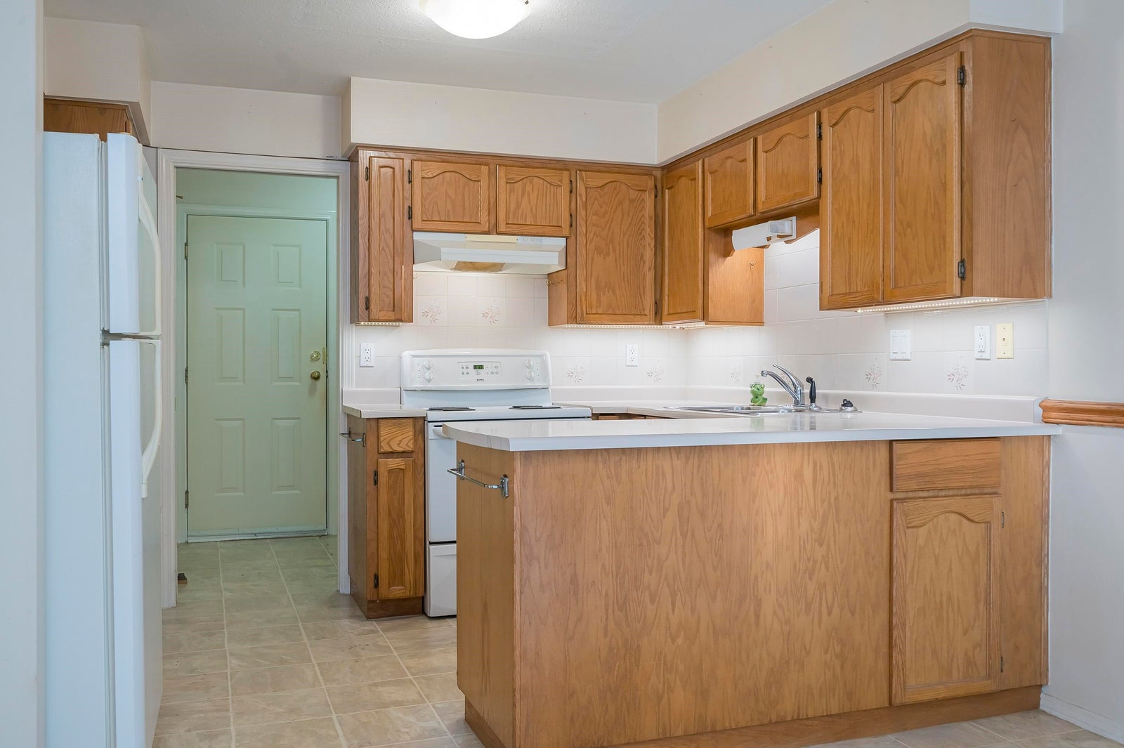Welcome to Cheriton Park! This 1,273 sq. ft. rancher-style home offers 2 bedrooms, 2 bathrooms, and a spacious open layout. The primary bedroom features dual closets, and the bright living/dining area includes a cozy gas fireplace. Enjoy two sliding doors leading to a beautifully landscaped, covered patio. Additional features include a large laundry room, single garage, and extra parking out front. Centrally located, just steps to Willowbrook Mall, Superstore, restaurants, and transit. A well-maintained, sought-after complex in a prime location!