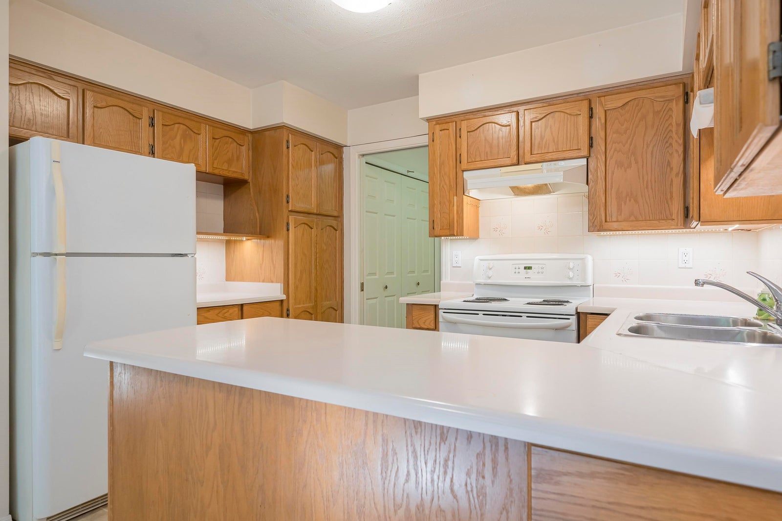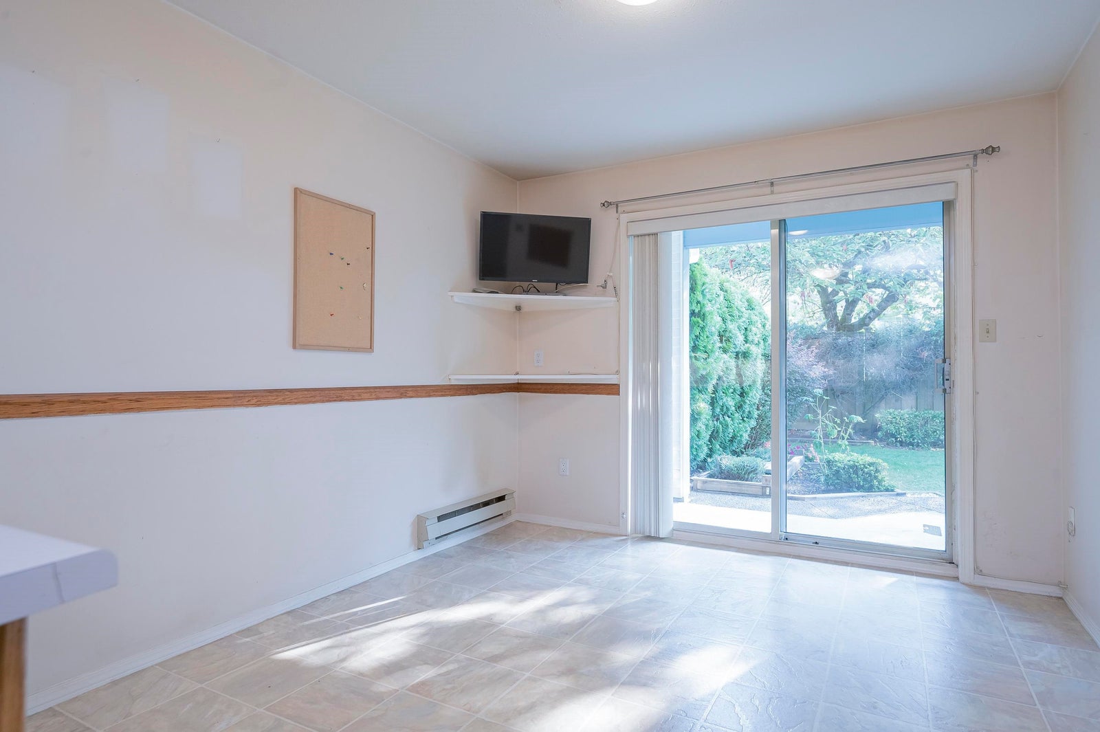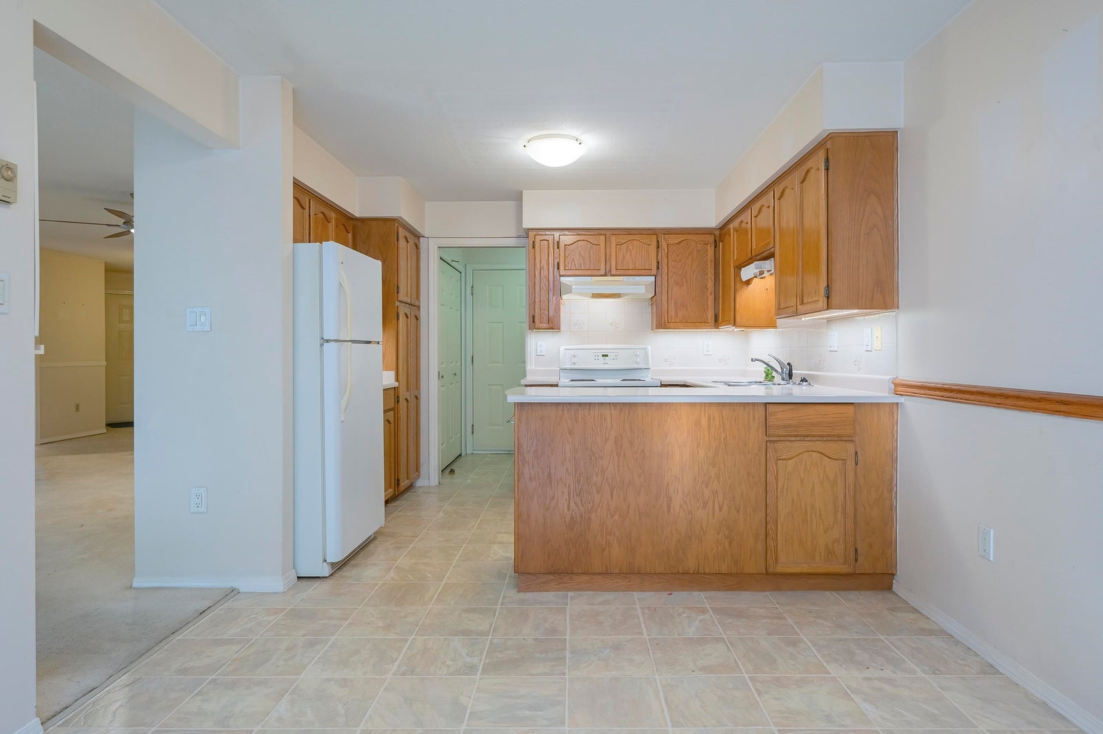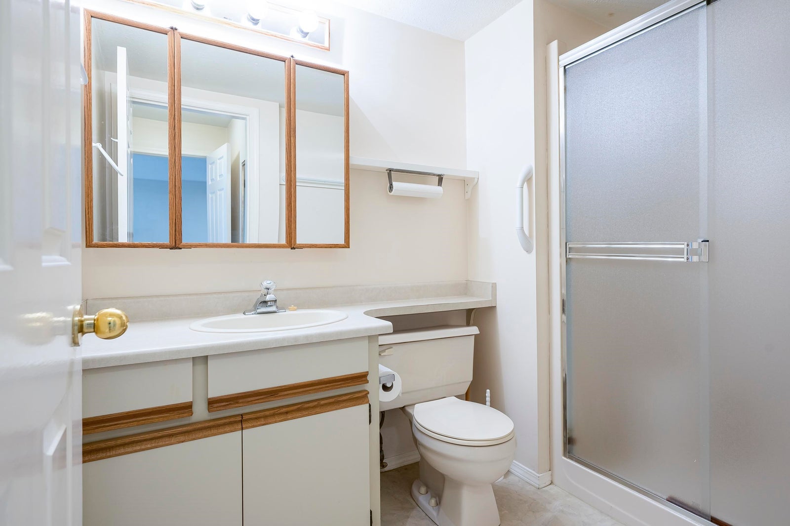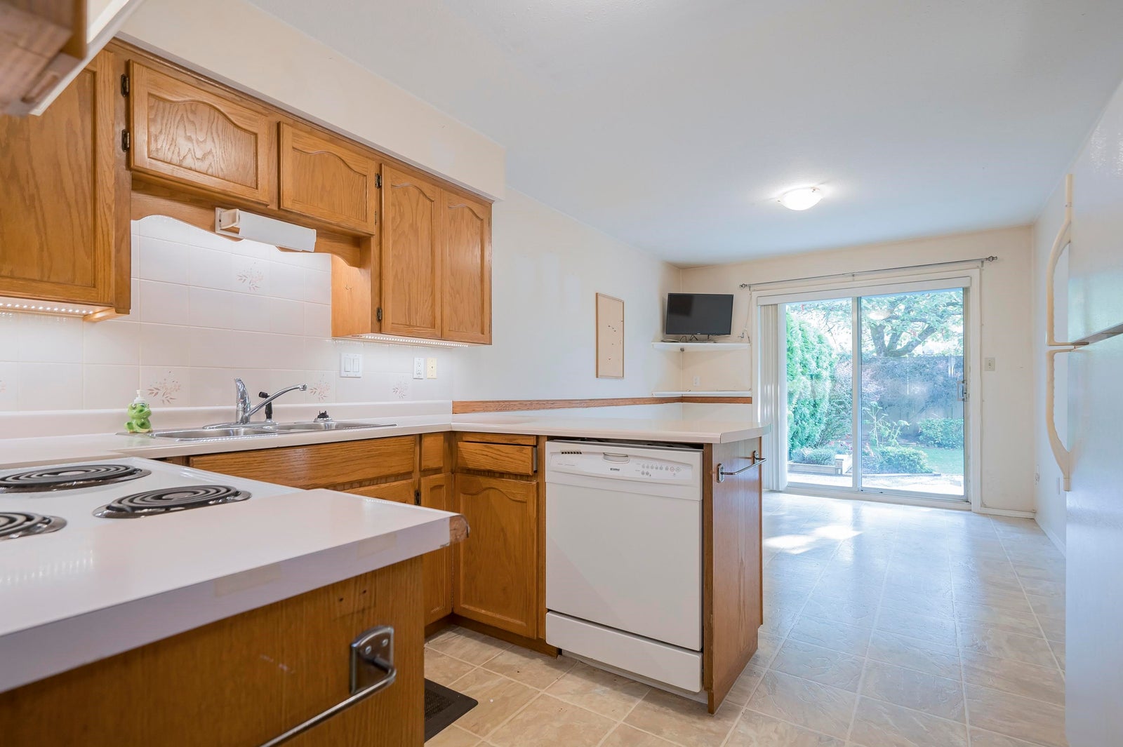 Welcome to Cheriton Park! This 1,273 sq. ft. rancher-style home offers 2 bedrooms, 2 bathrooms, and a spacious open layout. The primary bedroom features dual closets, and the bright living/dining area includes a cozy gas fireplace. Enjoy two sliding doors leading to a beautifully landscaped, covered patio. Additional features include a large laundry room, single garage, and extra parking out front. Centrally located, just steps to Willowbrook Mall, Superstore, restaurants, and transit. A well-maintained, sought-after complex in a prime location!