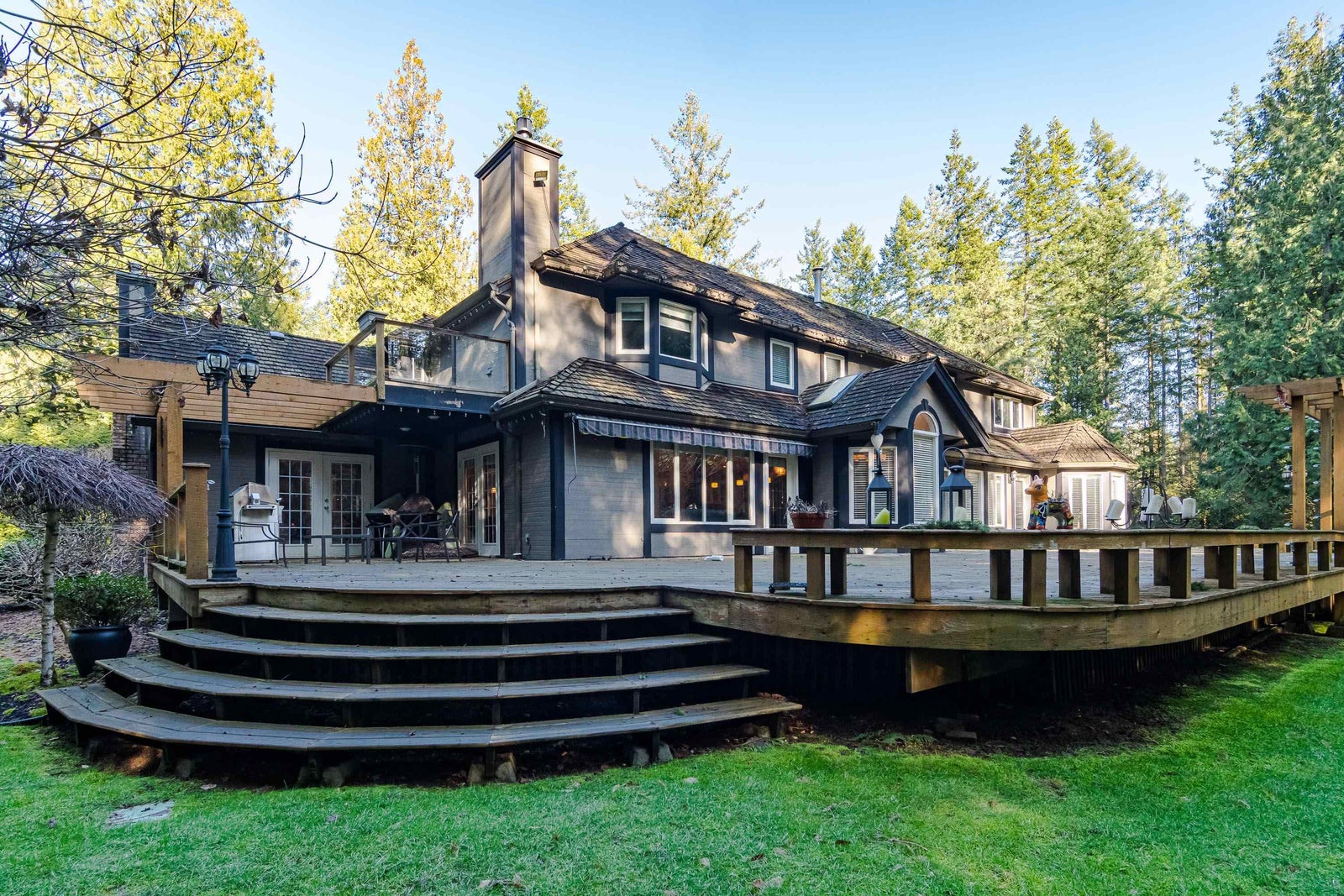 Absolutely gorgeous executive entertainers dream home. Located on totally private 2.38 Acres in the heart of Brookswood. Previously completely renovated with no expense spared. Large custom kitchen w/island, breakfast bar, granite counters, s/s appls, separate salad sink & 2nd wall oven. Large open plan with maple flooring on main free standing curved staircase. 4 bdrms up w/3 ensuites, including a deluxe primary w/5pc ensuite, walk-in closet, f/p & private deck. There is a 78x25 sundeck with multiple accesses form the main floor. Fully finished bsmt with gym, kitchen & maple walls in billiard room. 40x32 insulated shop, 40x40 sports court & lots of extra parking. All this on 2.38 flat, no creeks Acres. Designated for 5000sqft lots. Live in luxury while development is around the corner!
