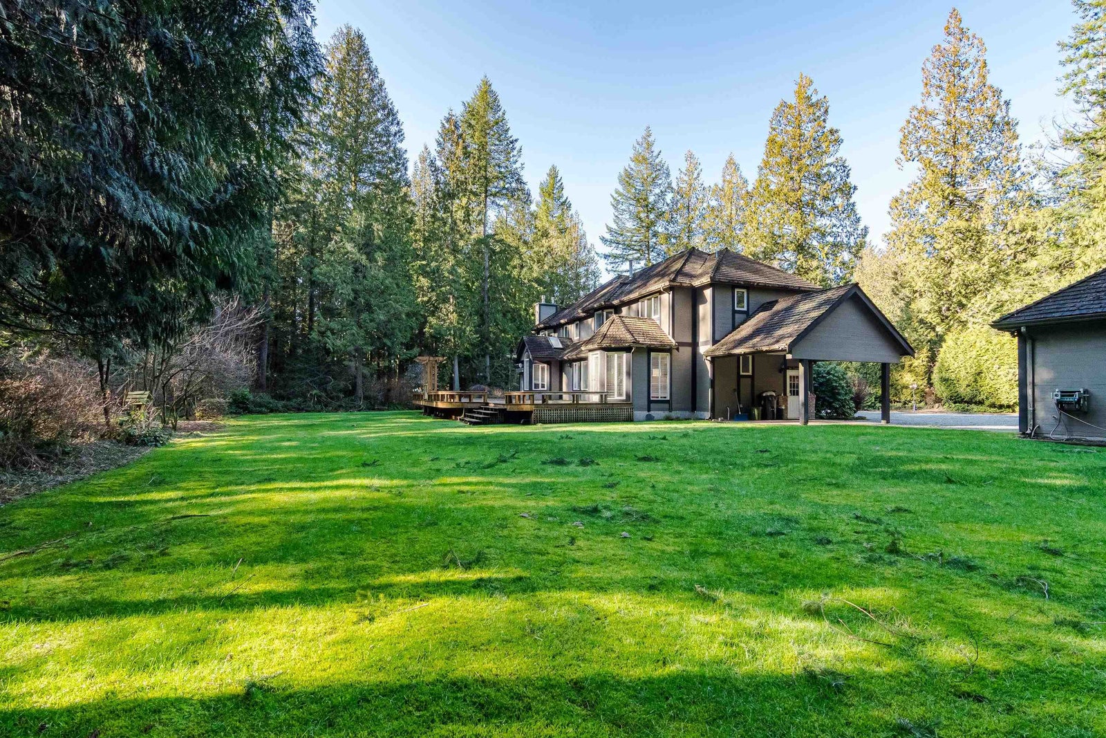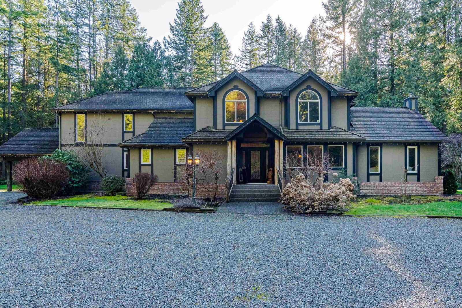 Absolutely gorgeous executive entertainers dream home. Located on totally private 2.36 Acres in the heart of Brookswood. Previously completely renovated with no expense spared. Large custom kitchen w/island, breakfast bar, granite counters, s/s appls, separate salad sink & 2nd wall oven. Large open plan with maple flooring on main, free standing curved staircase leads to 4 bdrms up w/3 ensuites, including a deluxe primary w/5pc ensuite, walk-in closet, f/p & private deck. There is a 78x25 sundeck w/multiple accesses from the mn flr. Fully finished bsmt with gym, kitchen & maple walls in billiard room. 40x32 Insulated Shop, 40x40 sports court & lots of extra parking. All this on 2.38 flat, no creeks Acres. Designated for 5000sqft lots. Live in luxury while development is around the corner!