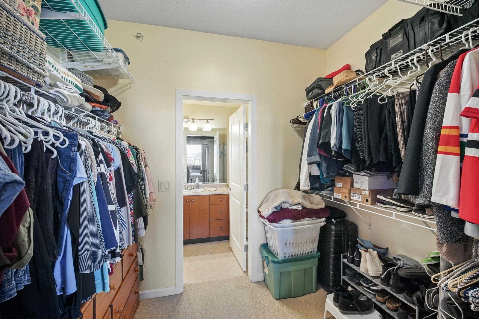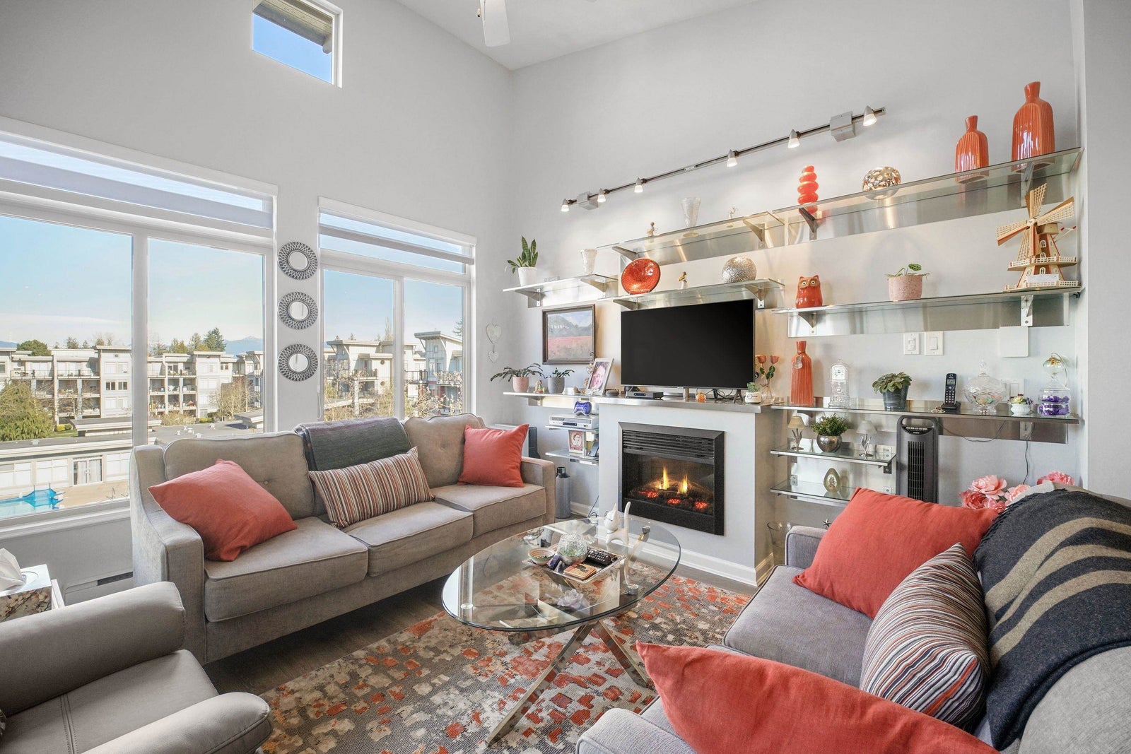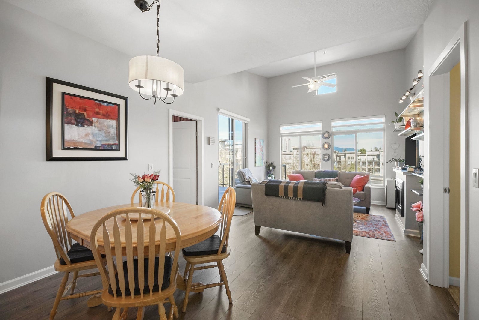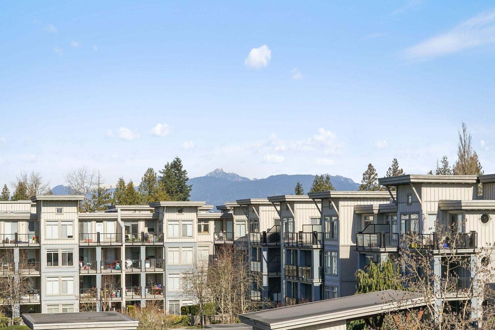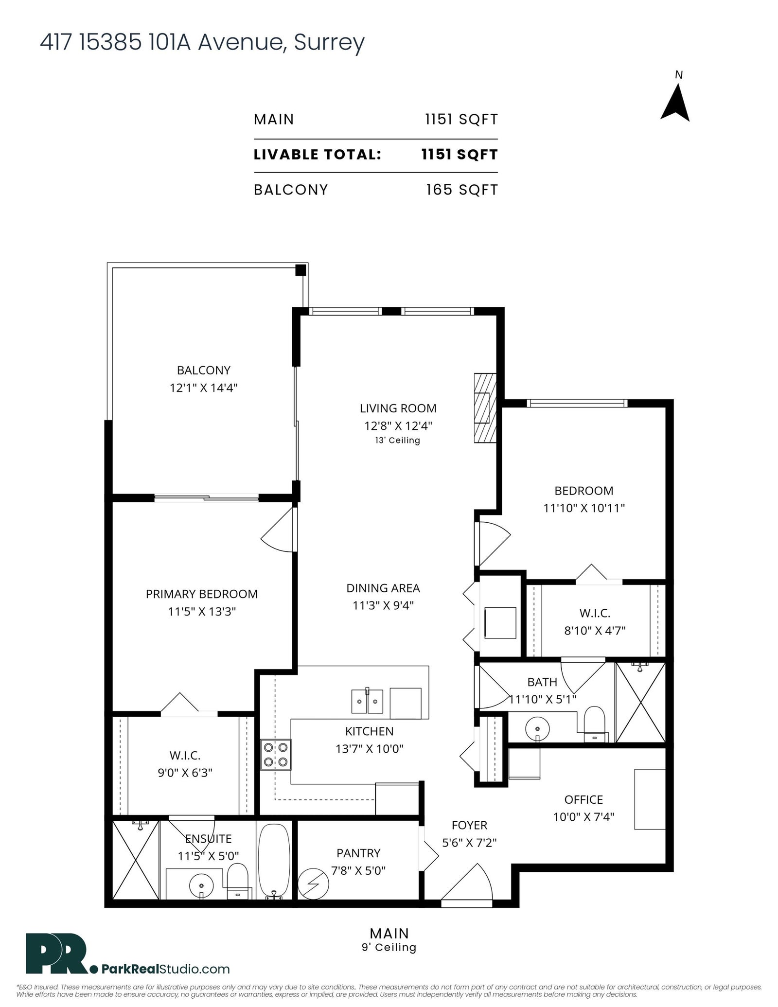 Welcome to the desirable Charlton Park. This bright and open Penthouse suite boasts 1,151 square feet of living space, 2 bedrooms, 2 bathrooms PLUS Den PLUS extra large in-suite storage/pantry w/shelving! With open views of the courtyard & mountains and soaring 14 ft ceilings in the living room, this home is full of natural light. Beautiful kitchen with granite countertops and an open concept floor plan. Primary bdrm has a large walk in closet and private ensuite, the second bedroom has walk in closet and access to the main bathroom. Located close to Guildford Mall, all level of schools, transit and easy access to HWY 1. Club house has a gym, outdoor pool, sauna, steam room and social lounge. Pets Allowed! Amazing layout, great location, bright and private, don't miss out!