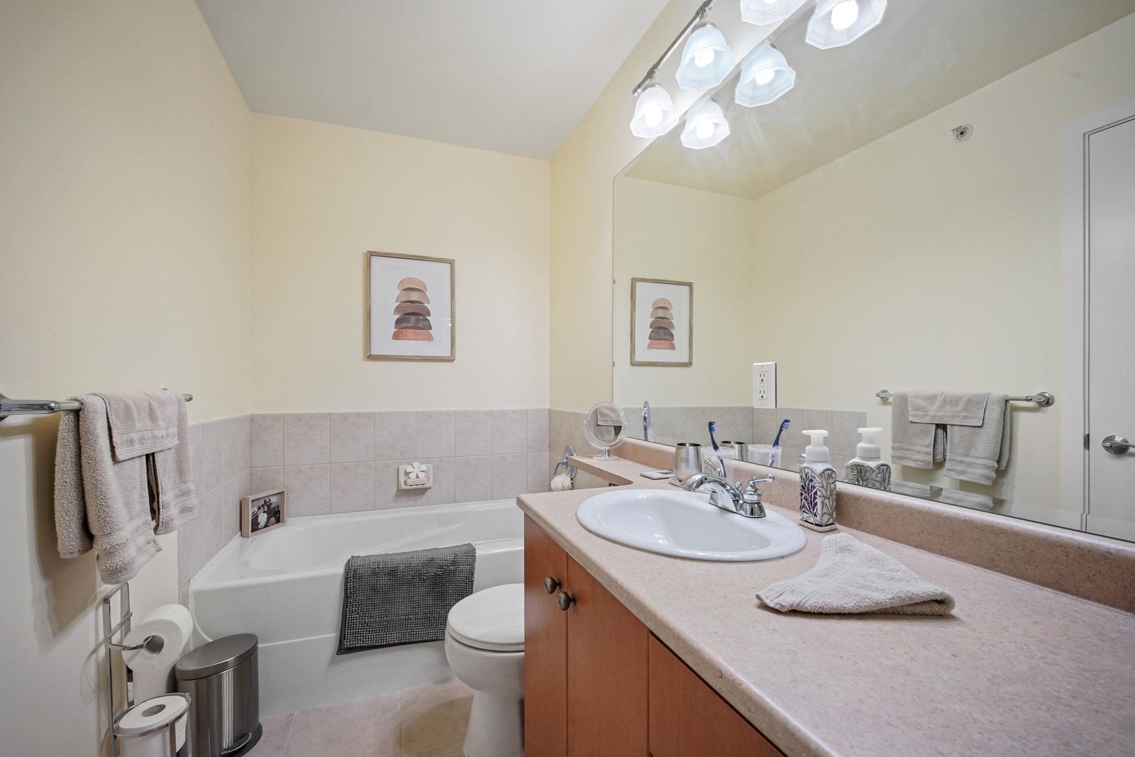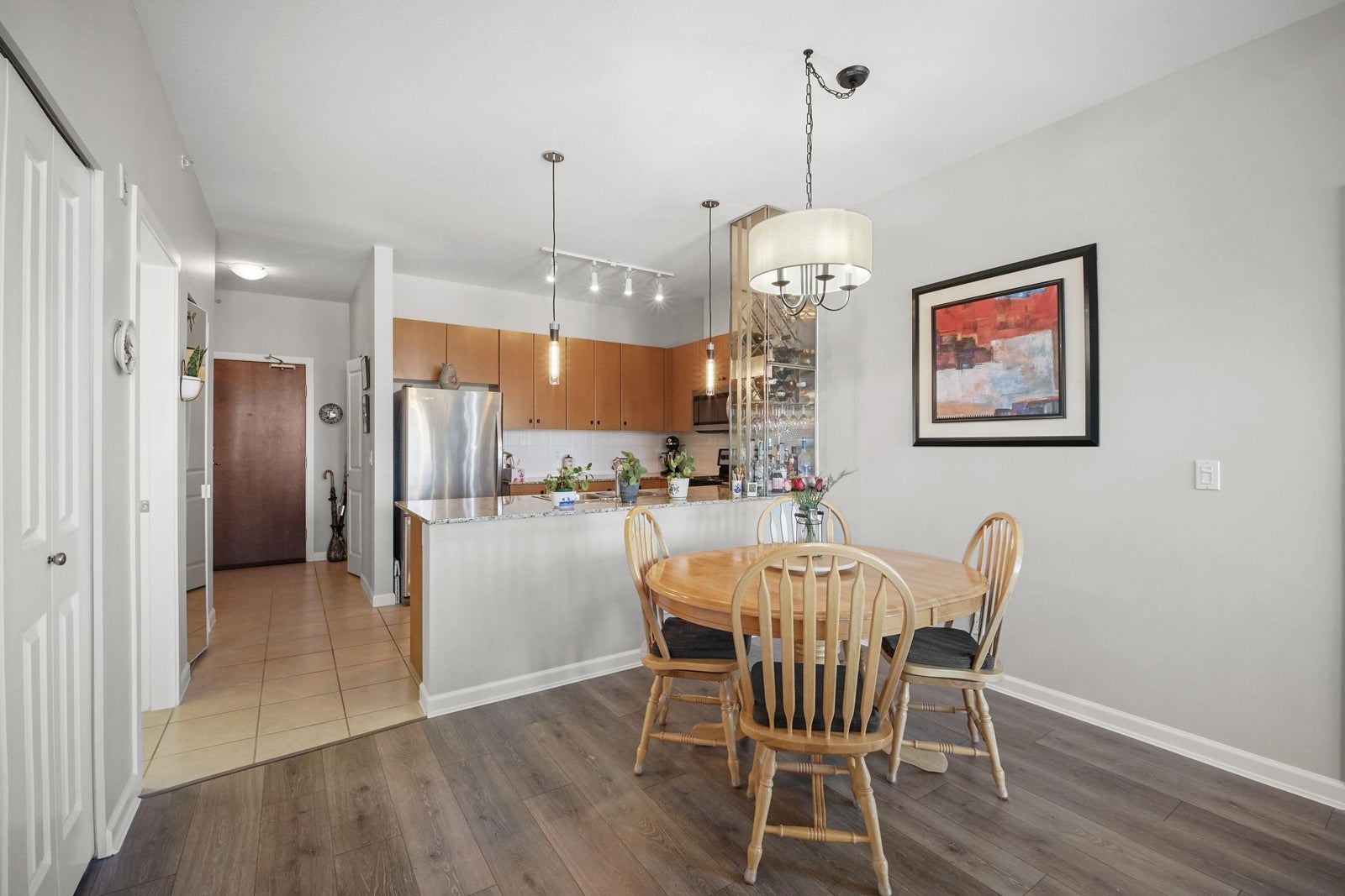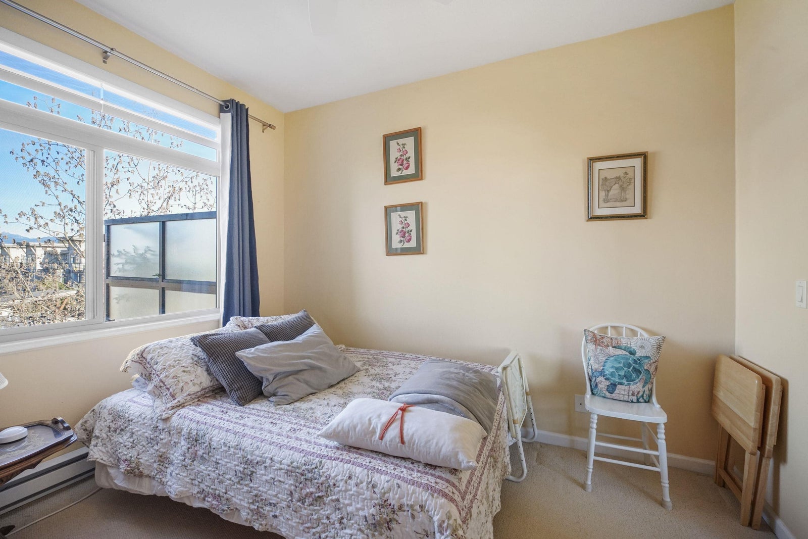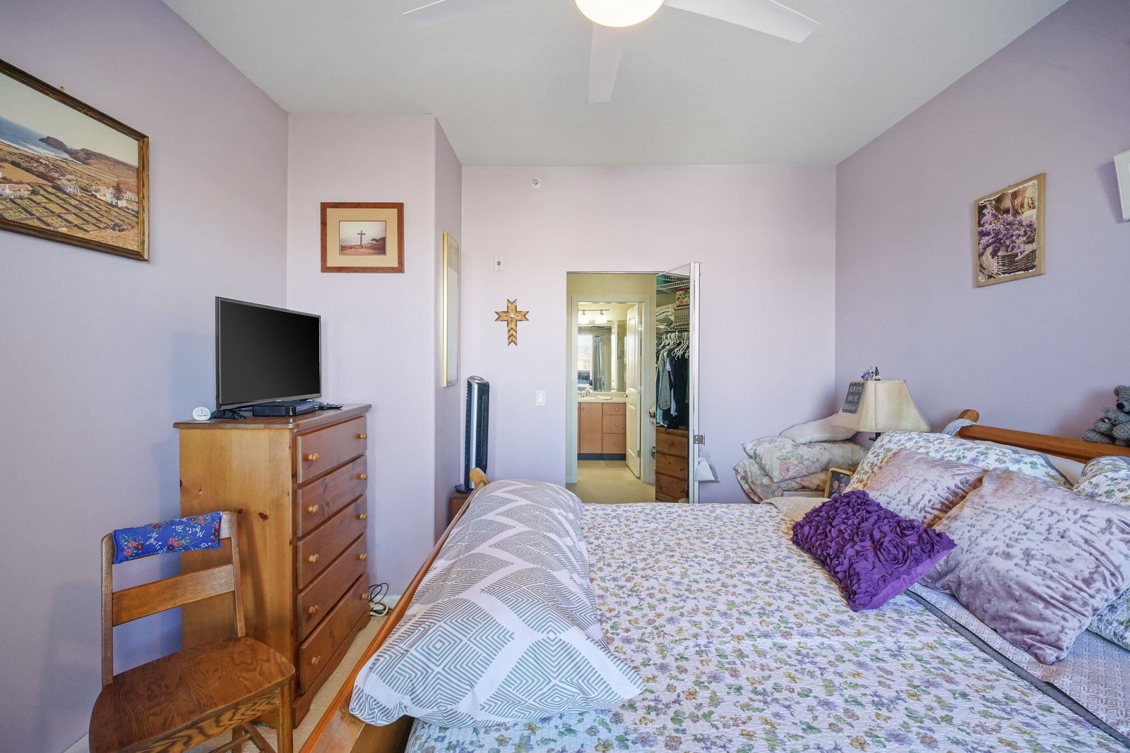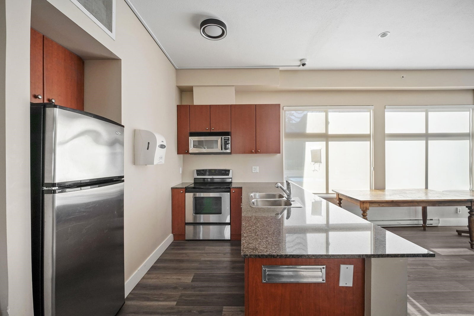 Welcome to the desirable Charlton Park. This bright and open Penthouse suite boasts 1,151 square feet of living space, 2 bedrooms, 2 bathrooms PLUS Den PLUS extra large in-suite storage/pantry w/shelving! With open views of the courtyard & mountains and soaring 14 ft ceilings in the living room, this home is full of natural light. Beautiful kitchen with granite countertops and an open concept floor plan. Primary bdrm has a large walk in closet and private ensuite, the second bedroom has walk in closet and access to the main bathroom. Located close to Guildford Mall, all level of schools, transit and easy access to HWY 1. Club house has a gym, outdoor pool, sauna, steam room and social lounge. Pets Allowed! Amazing layout, great location, bright and private, don't miss out!